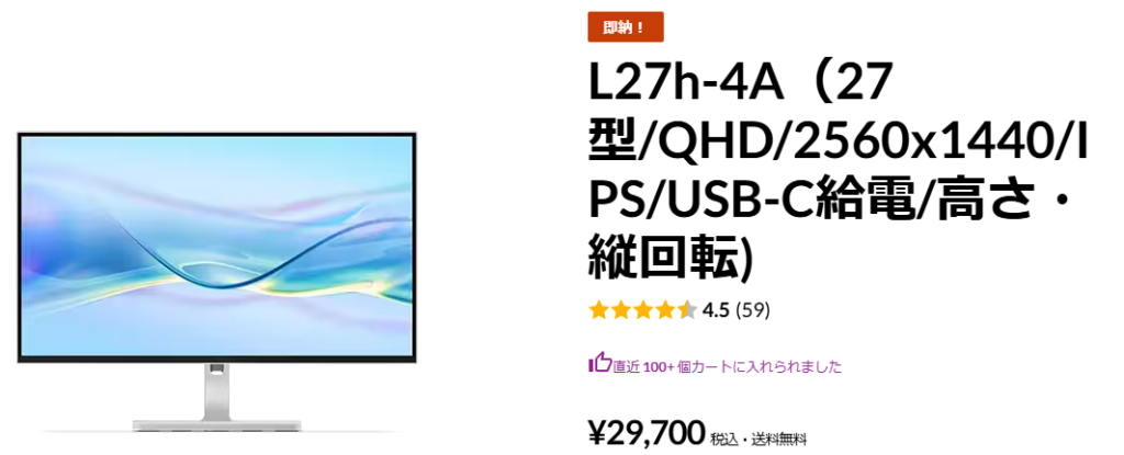 ちなみにモニターのみで電力をパソコンに供給する場合は、モニターからどの程度電力を供給できるかも確認が必要である。私の持っているモニターLenovo  L27h-4Aは65Wまで供給可能なモニターである。